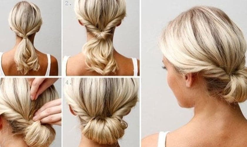 Depois de fazer um babyliss ou uma escova, torça o cabelo da frente e prenda por dentro.
