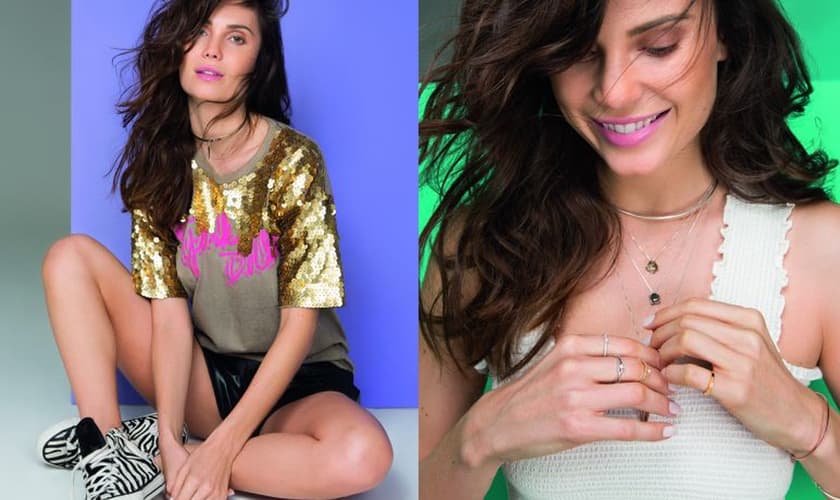 Top de algodão, Zara, R$ 99. Colares, do pescoço para baixo: choker prata, R$ 474, com pingente, R$ 174, pingente com corrente, R$ 310, todos Iracema. Anéis: solitário de ouro branco, R$ 2 790, e de ouro amarelo com ouro branco, R$ 2 450; aliança de ouro branco, R$ 3 590, e aliança de ouro amarelo, R$ 890, todos Vivara. Pulseiras de prata, R$ 357 cada uma, ambas Iracema.