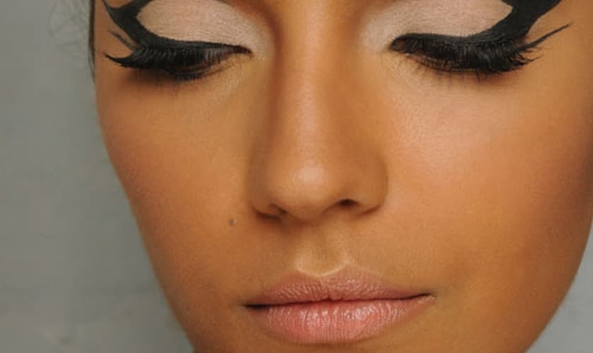 Seguindo o traço de cima, estique a linha do canto externo em direção à sombrancelha. Atente-se para a ponta do traço, que deve ser bem fininha, para não deixar o olhar carregado.