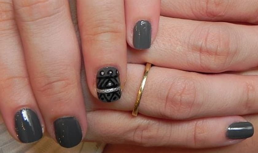 Passo 1: Comece preparando as mãos normalmente, aplicando a base e, em seguida, o esmalte cinza.