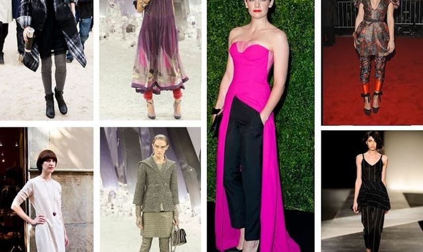 Sucesso nos anos 90, as calças com vestido ressurgem nas passarelas dos desfiles de verão 2014. A aposta para a estação mais quente do próximo ano, irá dividir opiniões mais uma vez, já que os vestidos foram criados para deixar as pernas livres e frescas. Uma combinação um tanto quanto inusitada e polêmica.