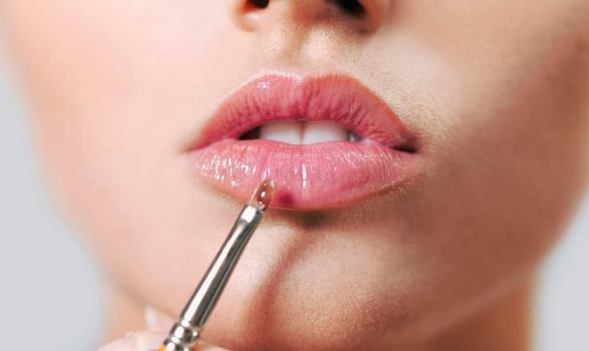 Use o próprio aplicador do Batom (ou um pincel achatadinho) para preencher totalmente os lábios.