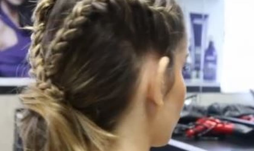 Comece separando três mechas laterais e cruze-as, pegando partes do cabelo.