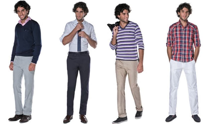 O guarda-roupa masculino conquista mais uma tendência: calça chino. Trata-se do mesmo modelo usada pelo exército americano na Guerra dos Boxers em 1900, na China e ao entrar na América, recebeu o nome de ”chino”.