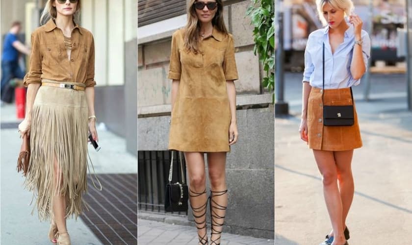 O suede remete aos visuais dos anos 10 e se tornou a tacada ideal para quem acompanha o estilo boho. O tecido, que é muito parecido com a camurça, já começou a ser apontado como tendência da estação.