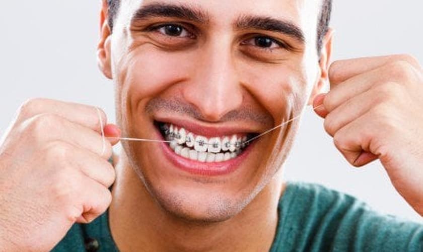 E para quem tem próteses fixas ou aparelhos ortodônticos? Recomenda-se o passador de fio dental ou o superfloss, que têm em uma de suas extremidades um dispositivo de plástico semelhante a uma agulha, para facilitar a introdução e a passagem sob os dentes.