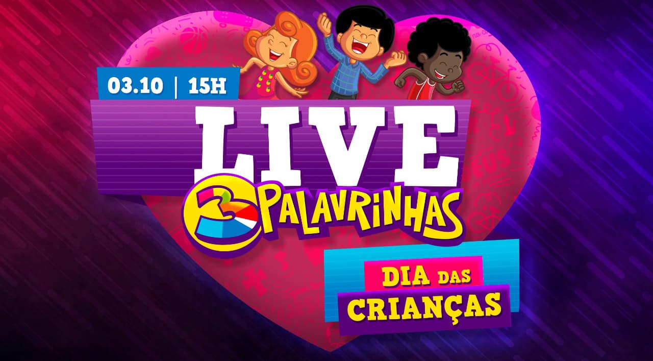 Em um Dia das Crianças antecipado, as personagens Sarah, Davi e Miguel irão garantir uma tarde divertida para os pequenos neste sábado (3), às 15h, na Live Dia Das Crianças – 3 Palavrinhas.