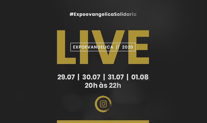 A Live ExpoEvangélica Solidária começa nesta quarta-feira (29) e vai até sábado (1), das 20h às 22h. Serão 4 dias de lives transmitidas pelo Instagram da feira.