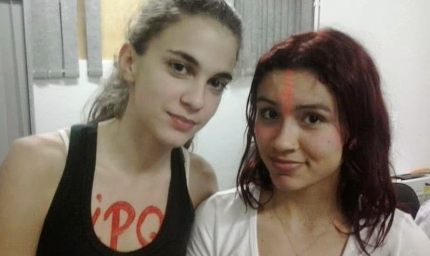 As jovens – que estavam seminuas sobre os ombros de dois rapazes –, reclamaram que o mesmo não foi feito com casais heterossexuais que se beijaram durante a pregação.
