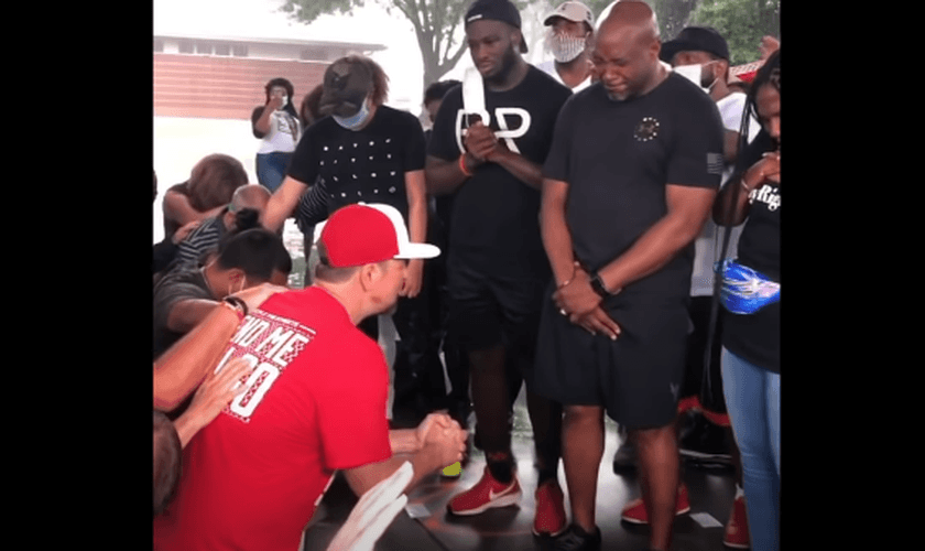 Em um vídeo obtido pela Click 2 Houston, os negros se emocionaram e também se ajoelharam para orar com os brancos. “Precisamos mostrar um símbolo que realmente pedimos desculpas pelo que foi feito aos nossos irmãos e irmãs negros”, disse à Fox 26 o co-organizador Bobby Herring.