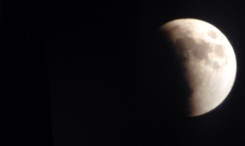 Lua já com uma cor avermelhada antes mesmo de ocorrer o eclipse total. (Foto: Levi Facó)