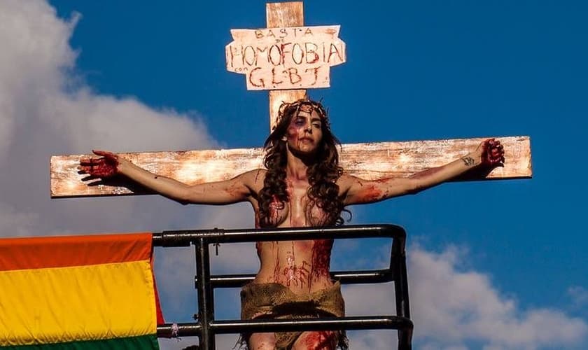Um dos participantes da Parada Gay satirizou Jesus crucificado e causou indignação no jogador de futebol Léo Moura.