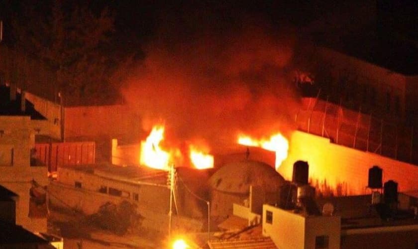 Partes do local religioso foram severamente danificadas pelo fogo, mas não houve relatos de feridos.