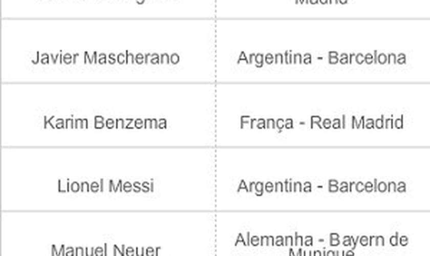 O Atlético de Madrid, finalista da Liga dos Campeões e campeão espanhol, também está representado através do goleiro Thibaut Cortouis e o atacante Diego Costa, outro jogador nascido no Brasil (porém naturalizado espanhol). Lionel Messi, Andrés Iniesta e Javier Mascherano, assim como Neymar, representam o Barcelona. O atacante Luis Suárez, reforço do clube catalão, foi deixado de fora da relação, apesar de seu grande primeiro semestre - com a artilharia do Campeonato Inglês -, deixando claro o peso da punição de quatro meses pela mordida em Chiellini. Outra ausência marcante é a de Franck Ribéry, finalista no ano passado que teve uma lesão às vésperas da Copa do Mundo e foi cortado da seleção francesa.