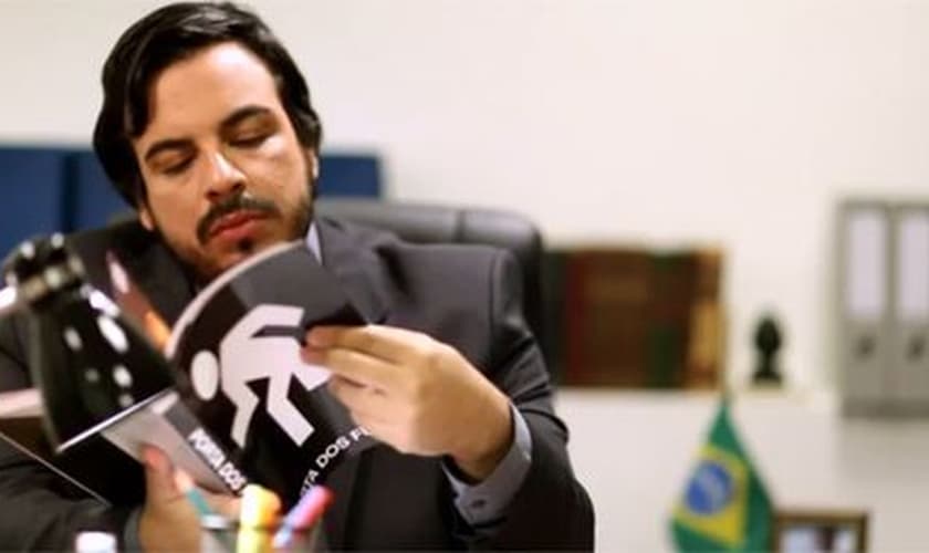 Com o título 'Deputado', o vídeo mostra a encenação de um político conversando com seus assessores caçando assuntos que estão em alta na sociedade para twittar e voltar a ser citado na mídia.