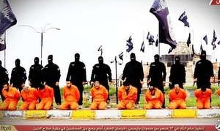 grupo Estado Islâmico (EI) publicou nesta segunda-feira fotos da execução de 13 homens apontados como combatentes sunitas inimigos dos jihadistas, que teria ocorrido na cidade Tikrit, no norte do Iraque.