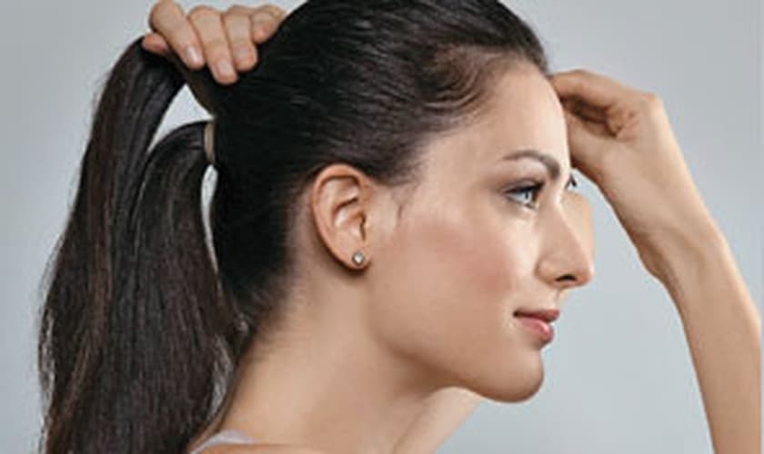 Rabo de cavalo clássico - Faça um rabo de cavalo bem alto e liso, puxando bem os fios. Aplique um spray para evitar o aspecto frizz. Uma presilha de strass valoriza ainda mais o look.