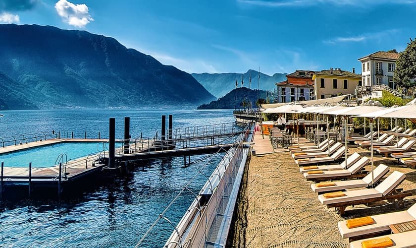 Uma joia no Lago di Como, na Itália, a piscina do Grand Hotel Tremezzo tem uma proposta bem diferente: ela flutua sobre o Lago, como se fizesse parte dele!